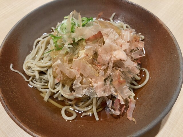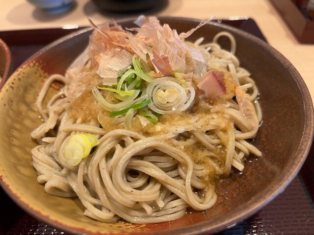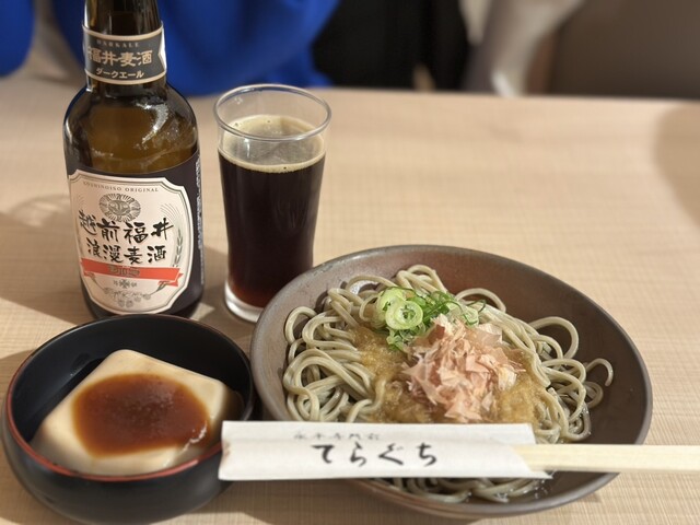 福井名物のおろしそばを大盛りで、またおつまみで胡麻豆腐の里永平寺ならではの胡麻豆腐をいただきました。大盛りは二枚になるおそばは、手打ちの二・八そばで、福井県産の早がりそばが使用されています。そのお蕎麦は、咽ごしが良く香り豊か。大根おろしをたっぷりと乗せ、大根おろし汁を加えたつゆを絡めて食べるおろしそばは、福井なら...