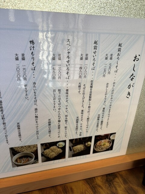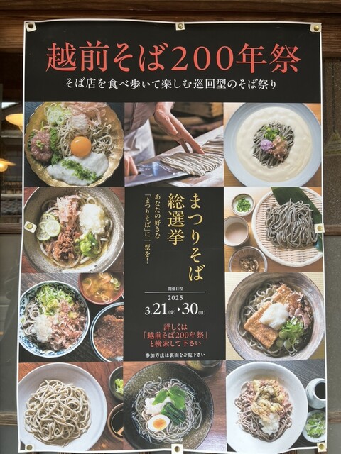 鯖江のメガネフェスの帰りに、無性に越前そばを食べたくなって食べログで検索、シンプルな店構えとシンプルなメニューに惹かれて来店しました。天ぷらやサイドメニューがなく、本当に「そば」を味わってもらおうとさ...