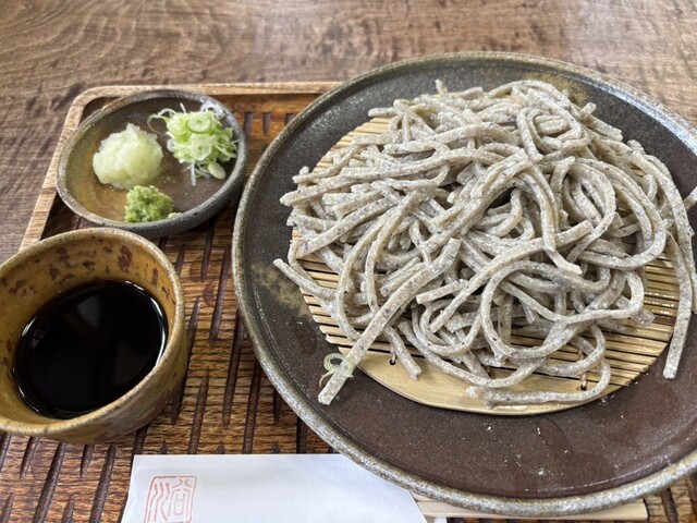 もりそば太打ち(粗挽麺):香りは期待したほど香らないが、蕎麦の味は楽しめる。噛み応えが...