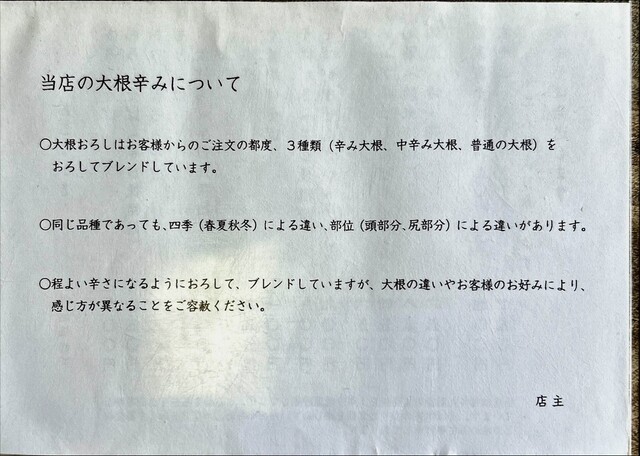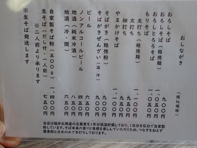 早速おろしそばの粗挽麺を注文しますが、売れてしまって半...