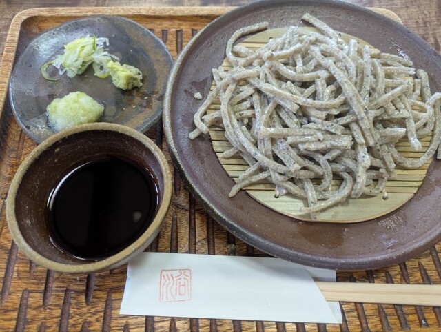 そばは粗挽きで太麺のぶっかけおろし十割そばで、風味がよく歯応...