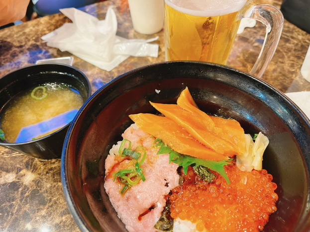 さかな街で海鮮丼を食べようとしたけど、どこも混んでいて、唯一すぐ座れたのがこちらのお店でした。