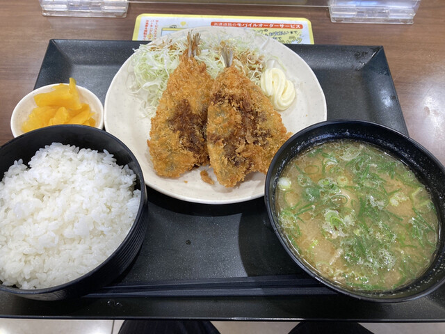 同僚からここの『アジフライ』と『豚汁』が美味しいとのおススメもあって今朝から決めてました。