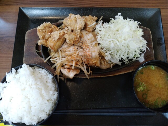 当店人気の生姜焼きと手つくり唐揚が付いたコラボメニュー、豚汁もついてジャスト1,000円の満腹定食です。一度ご賞味あれ!