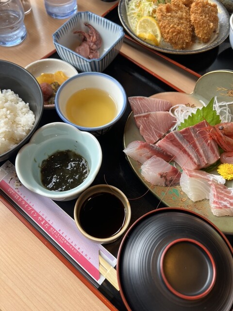 ガッツリとソースカツ丼にするか新鮮な海鮮系にするか迷いましたが、まだお昼なこともあったのでイカ刺身定食(1300円)を注文しました。定食にはイカ刺の他に、小鉢、ご飯、味噌汁も付...