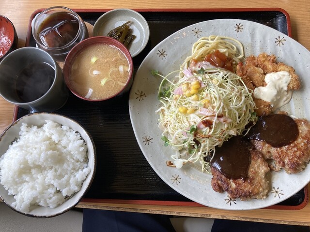 おろしハンバーグとチキン南蛮のセットです。