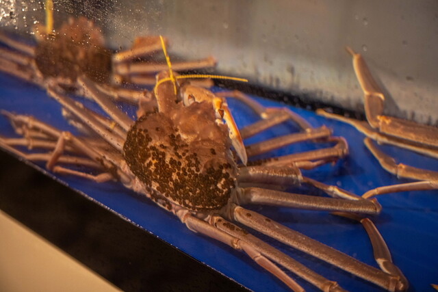 店内の大型いけすには若狭の海の幸が群泳し、冬はとらふぐ、越前ガニが泳いでます。