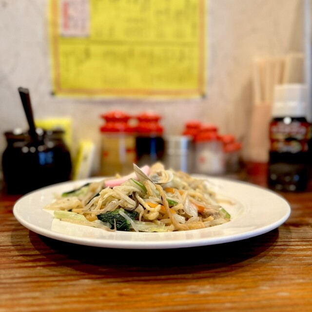 看板メニューは、自家製の極太麺を使用した「皿うどん」と「ちゃんぽん」です。特に皿うどんは、もちもち...