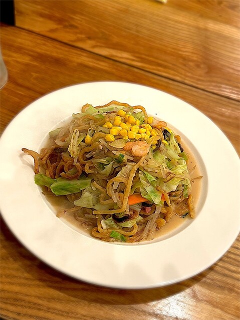 見た目は長崎皿うどんの柔麺タイプに似てい...