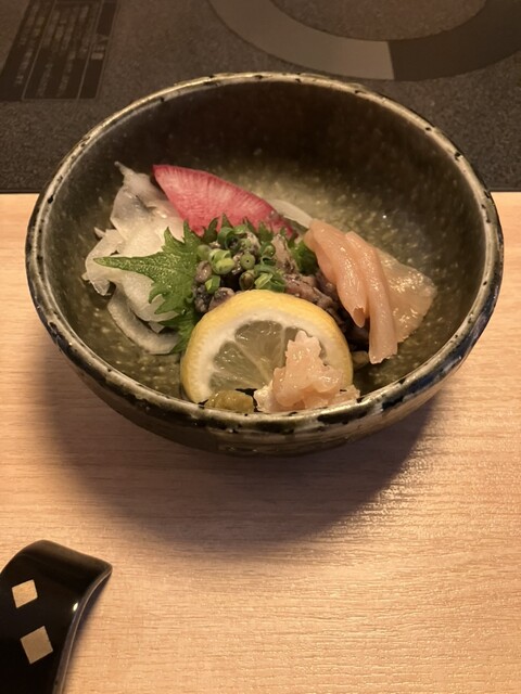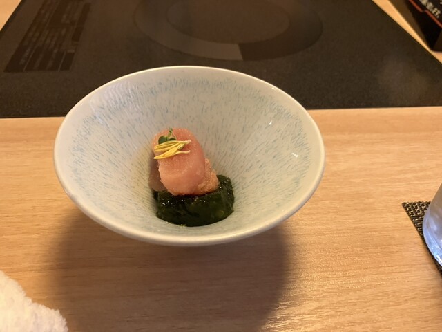 仲間内の30代の男性のオススメでこちらに。 今だけの山笠コース 前菜3種が6角の箱に入ってご提供。 小鉢、替鉢、向付と続きます。 どれも繊細で美しく、質が良い。 鰻に雲丹もあって、金粉まで施されています。 ひとつひとつの味もしっかりしていて、 ここまででも大満足。 メインの水... 詳細を見る