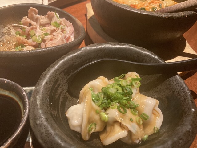 店員さんが気軽に話しかけてくれて、オススメのシソチーズとレンコンの餃子を注文。小粒のひとくち餃子が美味しい!