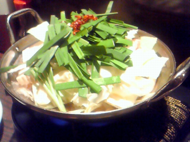 アツアツ、ハフハフしながら食べる白菜、ニラ、モツの組み合わせ、そりゃーおいしい。