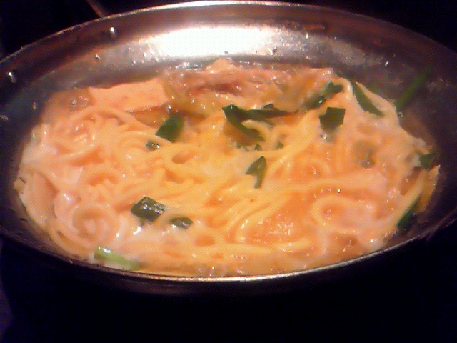 一通り食べおわってから、セットの麺を入れて煮込むと、これがまたいいんだなー。