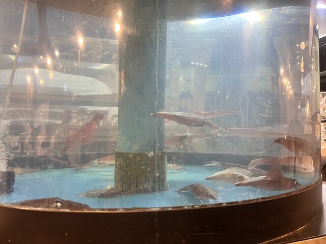 店内の水槽にイカぎ泳いで...