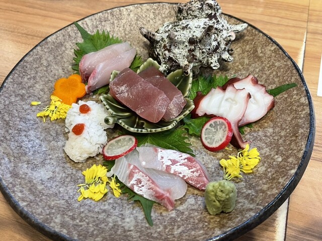 各種おすすめの魚介類のお刺身をいただくことができます。