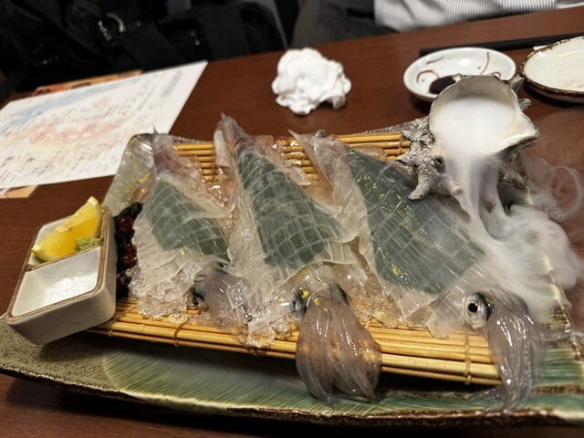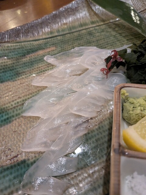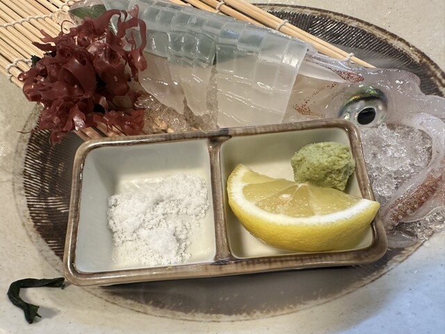 イカは綺麗に透き通っていて、レモンをかけると踊り出すほど新鮮でした。