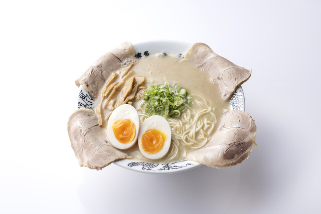 伝統の豚骨ラーメンの良さを活かしながら、オリジナルの味を作り出すことに没頭し、新しい味に向けて、開発に時間を費やした店主・吉村幸助。スープには大量の九州の豚頭や背骨、丸骨を血抜きして臭みをとるために下茹でをし、それから頻繁に骨とスープを入れかえながら味と旨みを調整している。店のもち味を決めるタレは、地醤油3種と、20種類以上の調味料、そして豚骨ラーメンを作る上では非常に珍しい魚介が5種もブレンドさ...れている。このタレを合わせることによって、味に奥行きがでてコクと旨みのあるスープになる。そして、自社製麺所『慶史』で作りあげた、もちもちとした食感の麺。全てがからんだ『究極の一杯』をまずはお試しあれ。