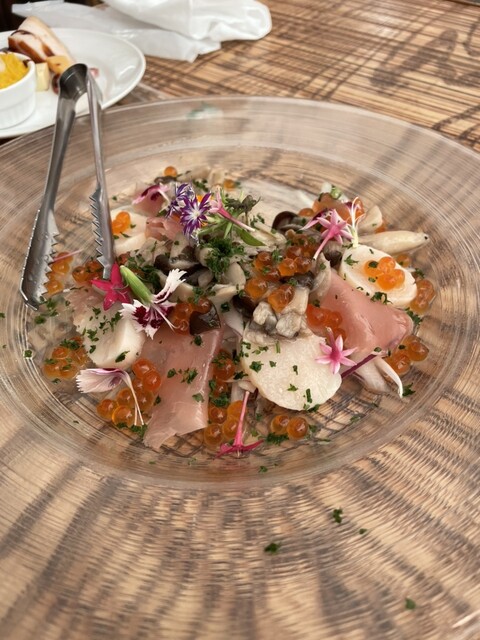 今日は打ち上げで博多駅のくうてんにあるコチラへ! 店名の通り、様々なワインが楽しめるお店とのこと… 店内はテーブルメインで広め!60人程の広さです! 今回は飲み放題付きのコースで、以下のような布陣! ◾️本日の前菜盛り合わせ ◾️季節の地野菜 シーザーサラダ ◾️名物 大根おでんのポルチーニソース ◾️バケット パン ◾️メイン 選べるお肉 ◾️シェフ特製ペスカトーレ ◾️... 詳細を見る
