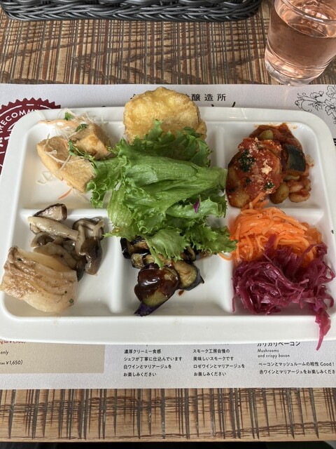 ちょい寄りで楽しめるこの冬いちばんのお得セット。自社醸造ワイン1杯(赤or白)と7種前菜。ポルチーニ香るあったか大根、手づくりソーセージ付き。飲めない人はお好きなジュースorノンアルコールのホットワインから選べます!
