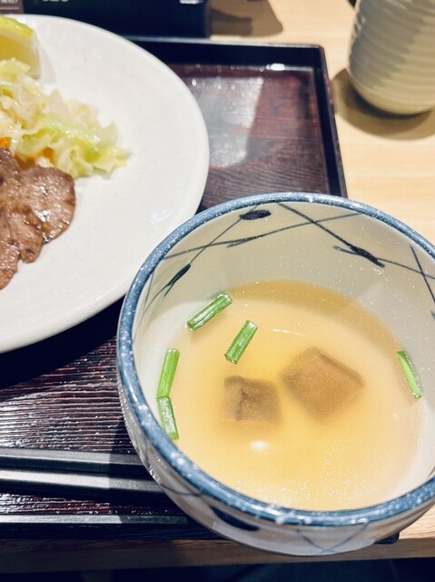円税込み)」。ジューシーな牛たんとビーフスープ、ごはんのセットをお値打ち価格でお召し上がりいただけます。
