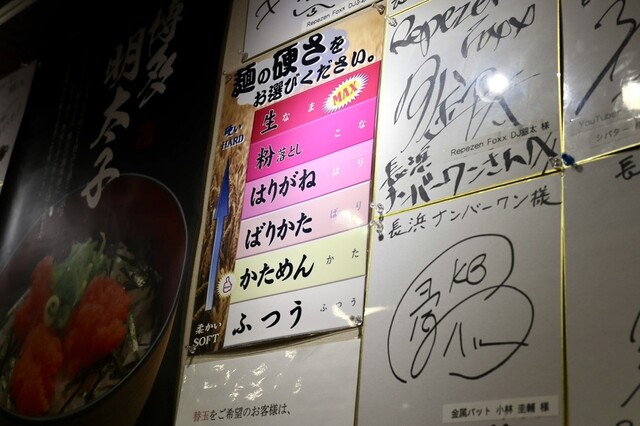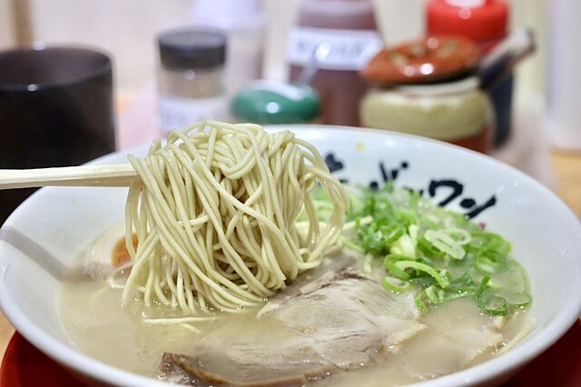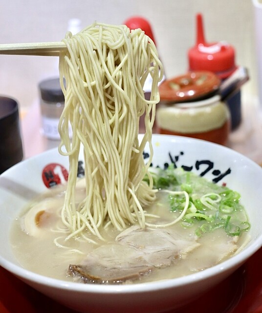まろやかでトロみがあるのにクセがない豚骨スープ『長浜らーめん』ちゃ福岡博多たい!!『らーめん』ば注文する時にはくさ、麺の硬さ『なま・ばりかた・かた・ふつう・やわ』ば一緒に言わないかんバイ。翻訳:まろやかでトロみがあるのにクセがない豚骨スープが『長浜ナンバーワン』の特徴です。滋賀県の長浜とよく間違える方がいらっしゃいますが、福岡市中央区長浜の『魚市場のらーめん』発祥が本物の『長浜らーめん」です。 『...らーめん』をご注文の際に麺の硬さをご一緒にお伝えください。 硬い順に『なま・はりがね・かた・ふつう・やわ』となります