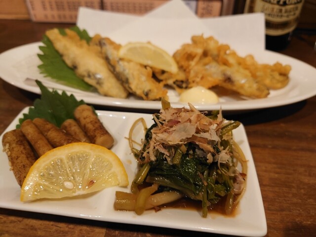 メニュートップの本日のおすすめは「イワシとわかさぎの天ぷら」@380円。