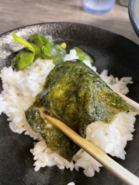 濃いめにしたのか結構塩辛い感じでしたが海苔をスープに浸してライスにダイブ