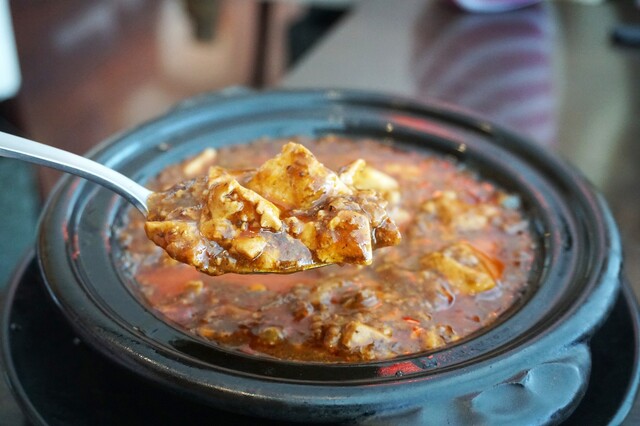 麻婆豆腐は熱々で登場。挽肉たっぷりで適度な辛さ。