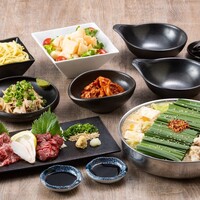 当店自慢の『博多もつ鍋』、人気NO1サイドメニュー『柔らか牛すもつ』、『熊本直送馬刺し盛り合わせ』まで、おおやまの美味いが詰まった豪華なセットです。