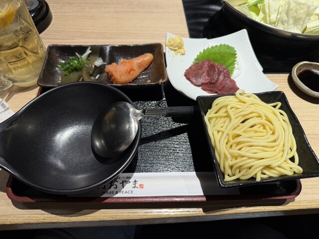 【山笠セット】 『博多もつ鍋』、サイドメニュー1番人気『柔らか牛すもつ』、『熊本直送馬ユッケ』、当店1番人気のセット6品