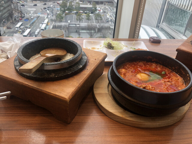 博多駅前すぐの場所にある韓国料理屋です。本場韓国の味をご提供するべく、調味料や仕入先、素材の調理方法など細かいところにも気を使っています。中でも寒い季節に嬉しい「海鮮スンドゥブ鍋」は当店自慢の逸品!遠赤外線効果で暖められた具が沢山入り、スタミナたっぷりのお鍋は身体を芯から温めます♪お酒との相性も良いピリ辛おつまみも豊富にご用意ございます!店内はインテリアにもこだわったオシャレな内装。大きな窓から博...多駅前を一望でき、昼には光が差し込む気持ちの良い空間に、夜は煌びやかな夜景をお楽しみ頂けます。大切な方と夜景を見ながらお食事が楽しめるカップルシートも有。冬のご宴会は当店にお任せ下さい!ボリューム満点なお得コースが勢揃い☆飲みたい人にオススメな、たっぷり3H飲み放題コースが\3,900~!ご宴会にピッタリな半個室席のご用意もございます、是非お早めにご予約下さいませ。皆様のご来店お待ちしております。