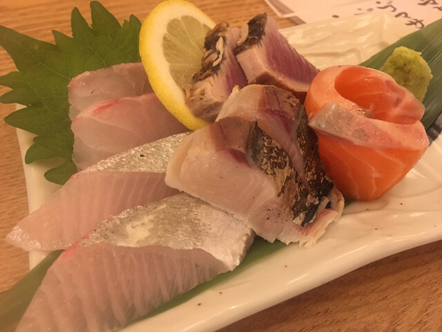 旬のお魚を「刺身」、「揚げ物」、「煮物」、「焼き魚」、「海鮮焼き」など