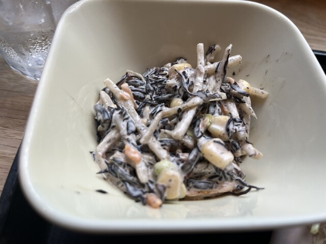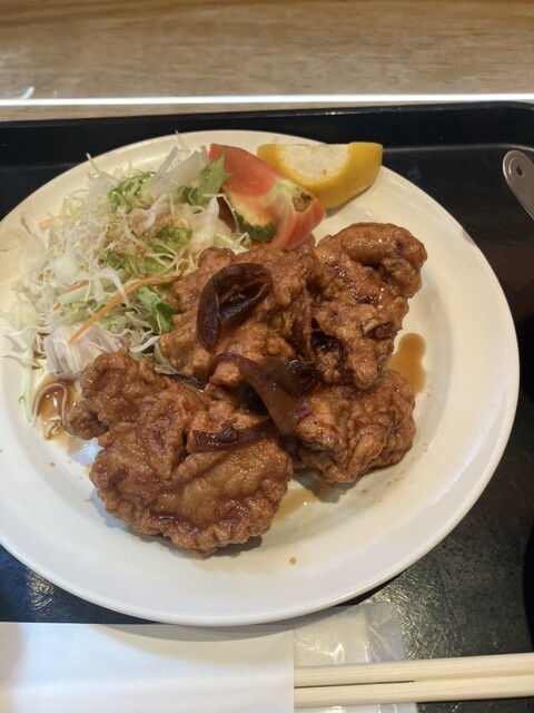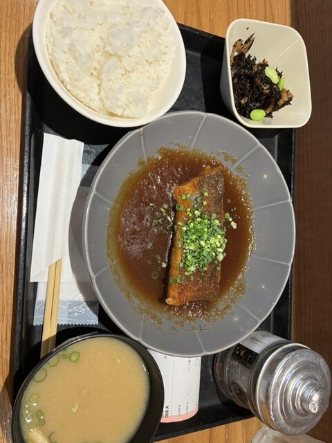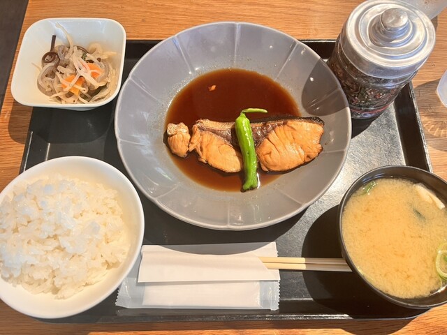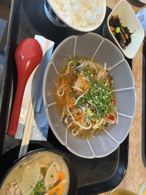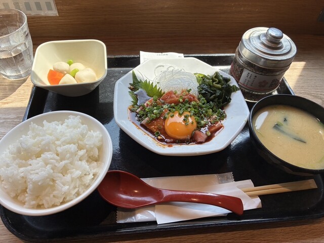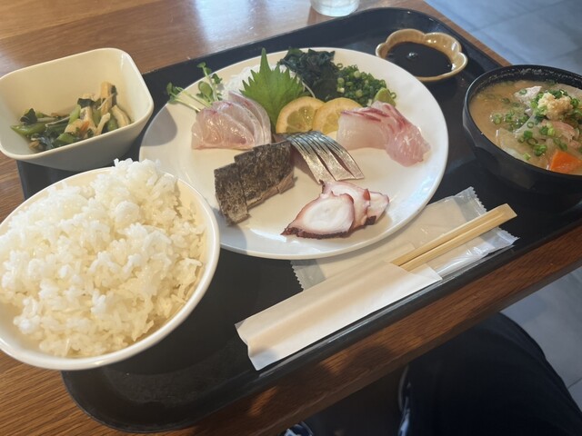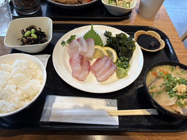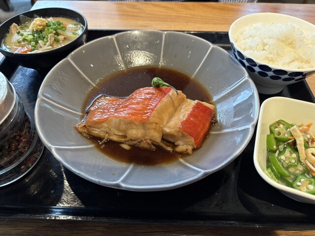 プリプリとした食感と上品な甘みが際立つ金時鯛の刺身が主役の定食。鮮度抜群で、わさび醤油との相性も抜群。刺身の下には大根のつまやワカメ、大葉、レモンが添えられ、見た目にも爽やか。小鉢のひじき煮が素朴な味...