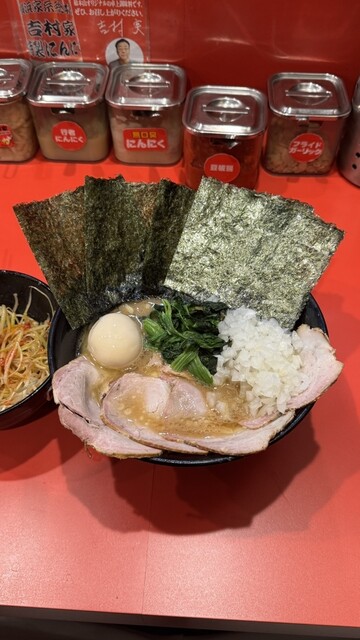 大好き吉村家直系が、並びなし、という時点で怪しさ満点なのですが、食べてみてやはりなんか違う感。薄いのかな、ご飯ガッツきたくなる、あのパンチがない。。