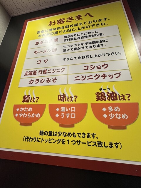 スープの濃さや、アブラの量、麺の硬さが選べます。