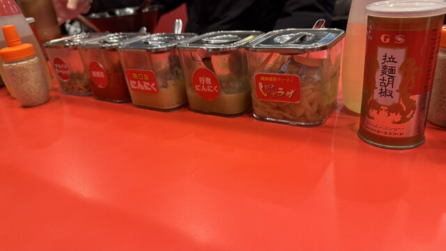 ラーメンはトッピングもしましたが美味しかったです!卓上に豆板醤やスープ、お酢...