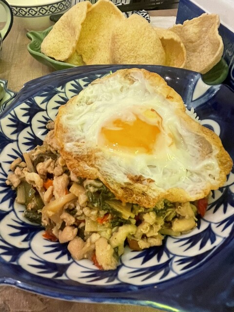 秋〜春のガムランディで一番人気のカイランサイのタイ式辛炒め(パッ・カナー)とトードマンプラー、シンハービールでいただきました♪(´ε` ) 〆は定番のガパオライスで、これが鉄板‼️ ご馳走様でしたm(_ _)m 今日のタイ飲み ①生春巻き ②東北地方サラダ ③シュリンプのココナッツカレー... 詳細を見る