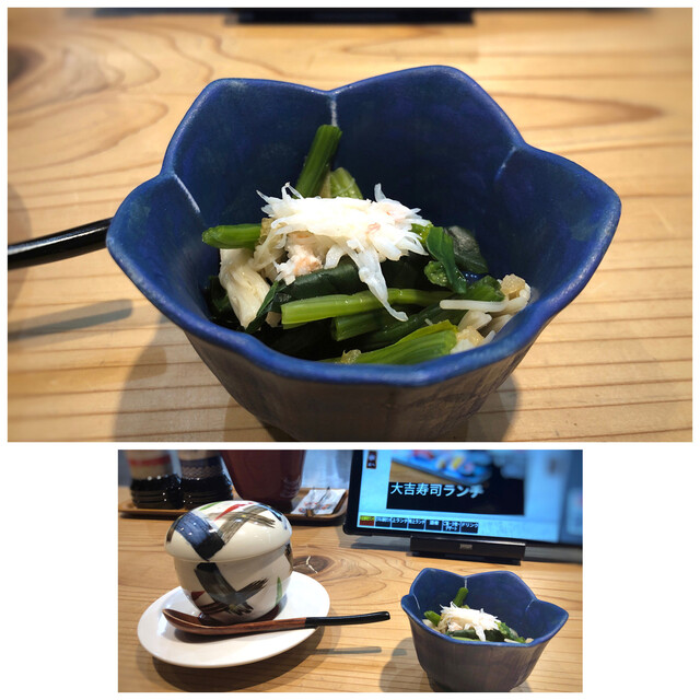 ◆最初に小鉢と茶碗蒸しが出されます。小鉢はお浸し。