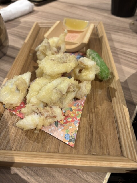 出張で博多へ。20時過ぎに到着。 予約してたので、スムーズに案内。当日予約ってありがたいよね。 店内はシンプルでおしゃれよ。 メインは店名より「もつ鍋」でしょう。しかも、塩がおすすめらしい。では、問題なくオーダー。 あと、イカの刺身からの、天ぷら。 ごま鯖は売り切れ。残念ですが、この出... 詳細を見る