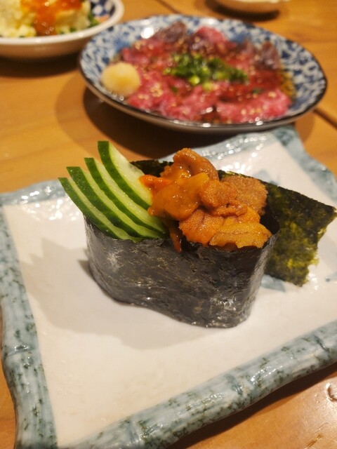 お寿司をおつまみに、豊富なお酒をお楽しみいただける当店。当店のメニューに、大人気の【海老7seven】と【うなカツサンド】をご用意しました!!人気メニューの生雲丹と国産牛の炙りの【うにく】はもちろん、2貫165円からご注文いただけるお寿司メニューやお酒に合うその他のメニューもございます♪種類豊富なアルコールもリーズナブルな価格でご用意しておりますので、ぜひお越しください◎