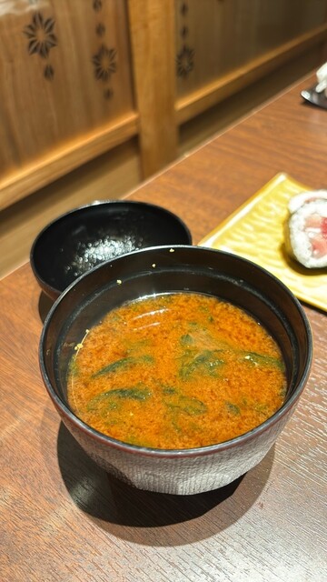 →濃いめの赤出汁にうれしいあおさとなめこの組み合わせ✨