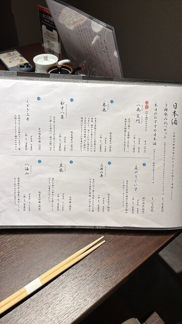 お酒に関しても、現在は焼酎35種、日本酒10種以上を常備しており、日本酒3種飲み比べセットもご好評をいただいております。お料理とのペアリングもぜひお楽しみいただけましたら幸いです。