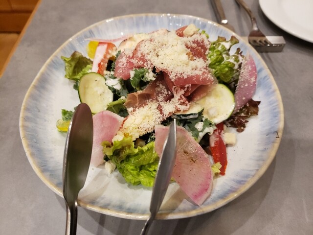 日曜日のお昼に博多駅のくうてんに新しく出来たピザ屋さんに行ってきました。 白金にあるピザ屋さんが博多に出店されたようで、期待値も上がります! しかも、土日でもお得なランチメニューがあって、前菜、ピザorパスタ、メイン、デザートで3800円のコースにしました(^^) 前菜はオムレツやパテなど。おすすめのグラスワインと共に頂きました。頂いた白のグラスワインは1000円くらいでしたが、香りもよ... 詳細を見る