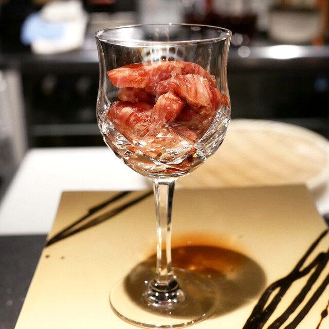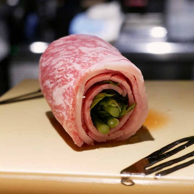 店主自ら厳選した新鮮な旬の素材を使ったコース料理をご提供します。一人一人のお客様に目が届くようにしております。串に使用するお肉にはこだわりの九州和牛を使用。