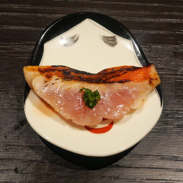 厚切りカルビと赤酢のシャリからはじまる「名物焼うお」をご堪能いただけます。 赤酢の酢飯はお替り自由。 焼うおをしっかり楽しむならこちらのコースがおすすめです。