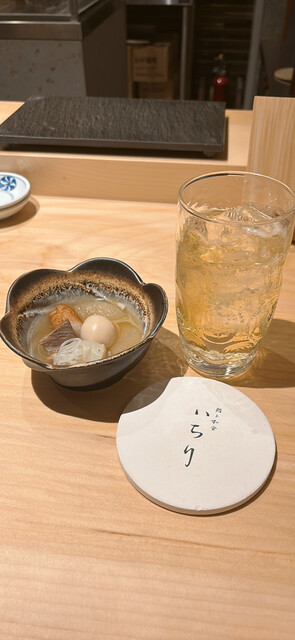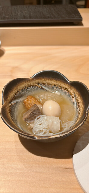 大根・たまご・白滝・練り物・牛すじが入っていて、出汁がしっかり染み込んでいるけど濃すぎず優しい味でお通しでこのボリュームは嬉しい✨