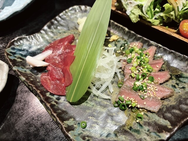 色々食べたい!そんな方のために作ったコースです。当店人気のメニューを贅沢に組み合わせています。そこに熊本県産馬刺しと熊本県産馬ユッケまであります。+2400円で90分飲み放題が付きます