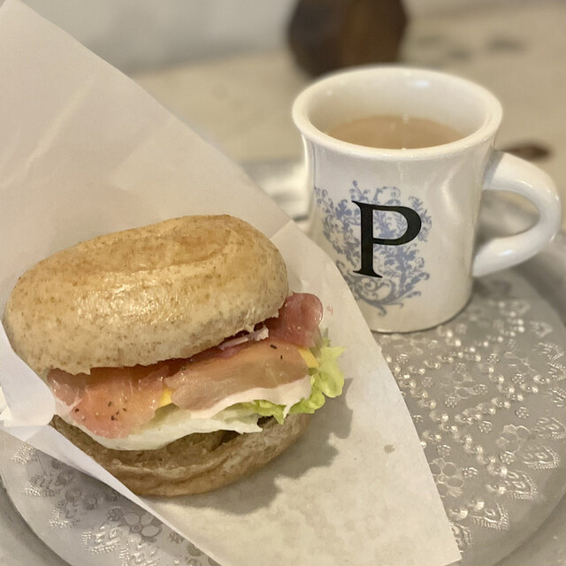 オーダーしたもの 『ベーグルサンドウィッチ 生ハム・チェダーチーズ・レタス(ベーグル:全粒粉)』 『カフェオレ(Hot)』 購入したもの 『ベーグル くるみ』 『ベー... 詳細を見る