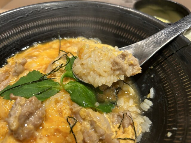 ご飯のところに作りたて親子丼の鍋から入れてくれる感じです