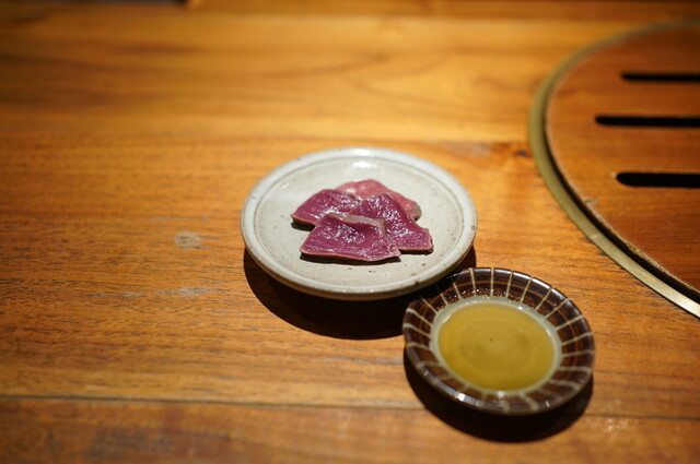 テンポは結構ゆっくりで、店主が一枚一枚丁寧に肉を焼いてくれま...